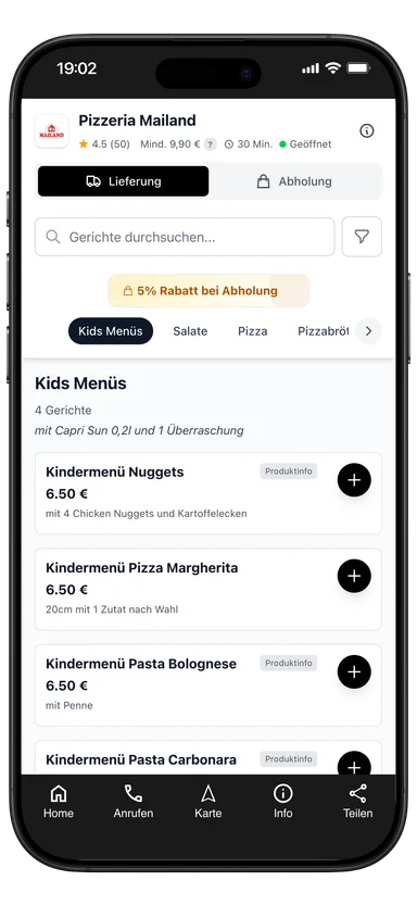 mit Eisbergsalat, Lollo Bianco, Rucola, Mais, Gurken, Tomaten und Knoblauch-, Honig-Senf-, Cocktail- oder Balsamico-Dressing und 3 Pizzabrötchen